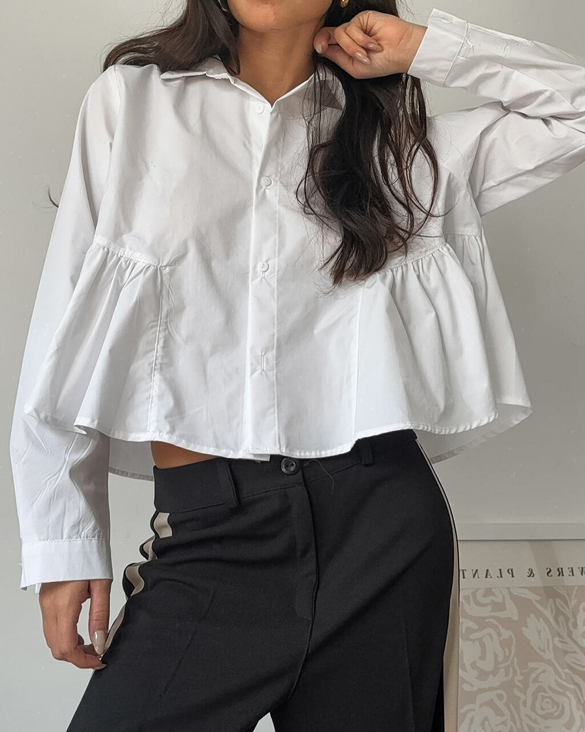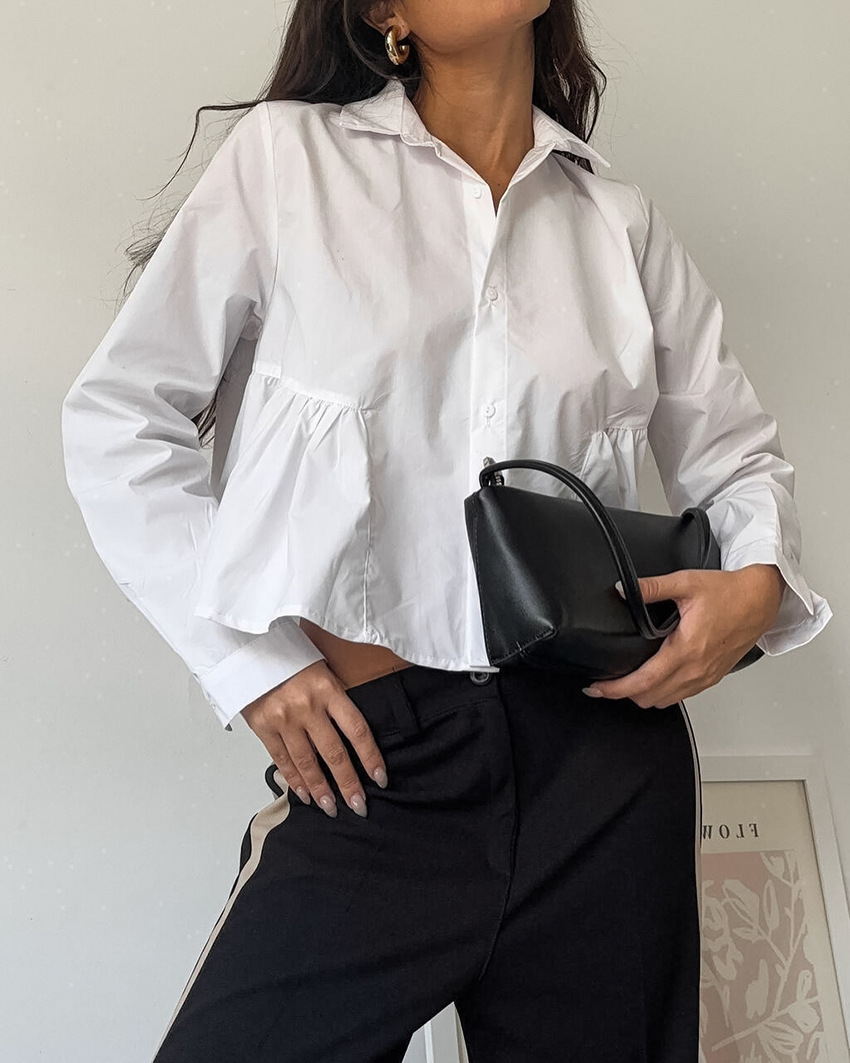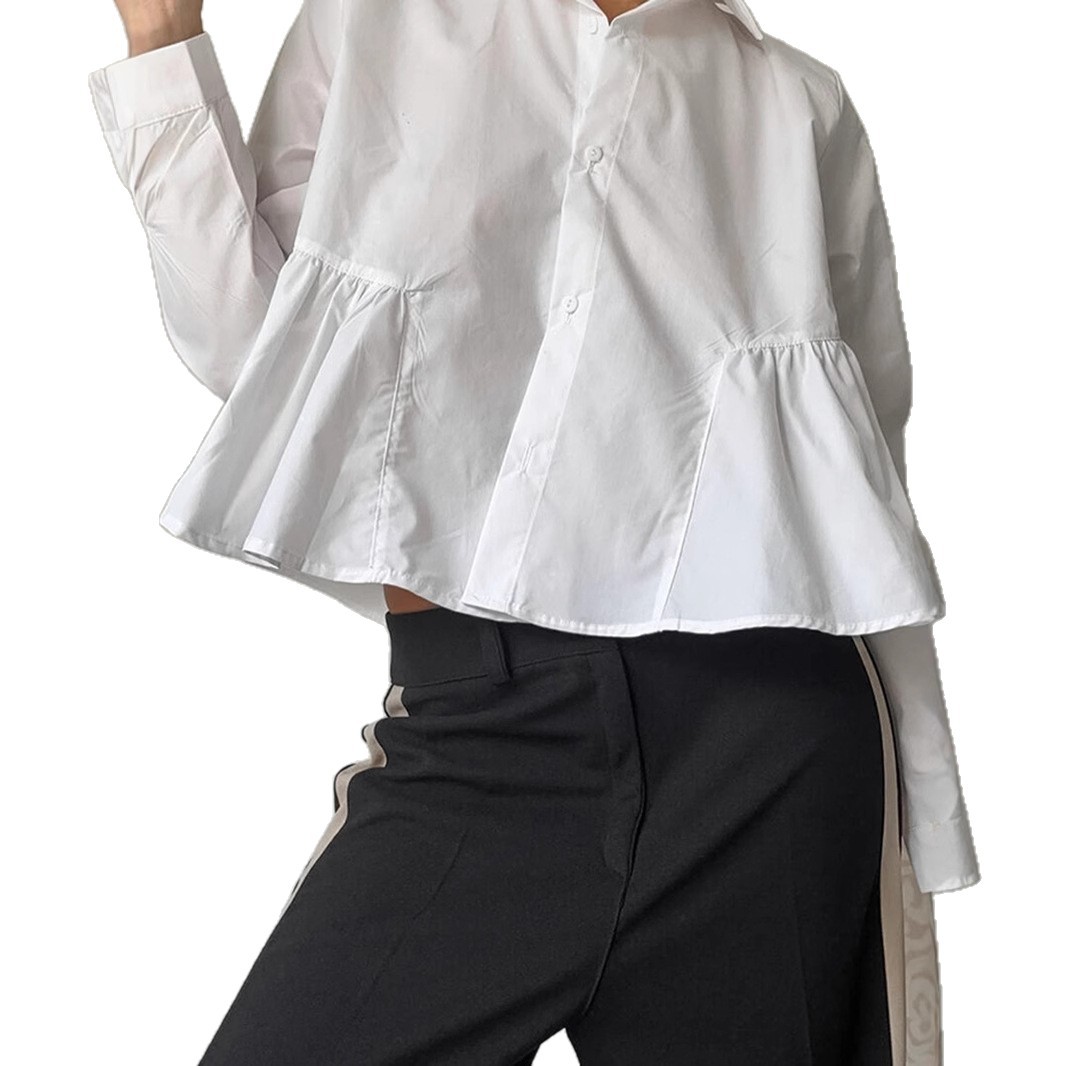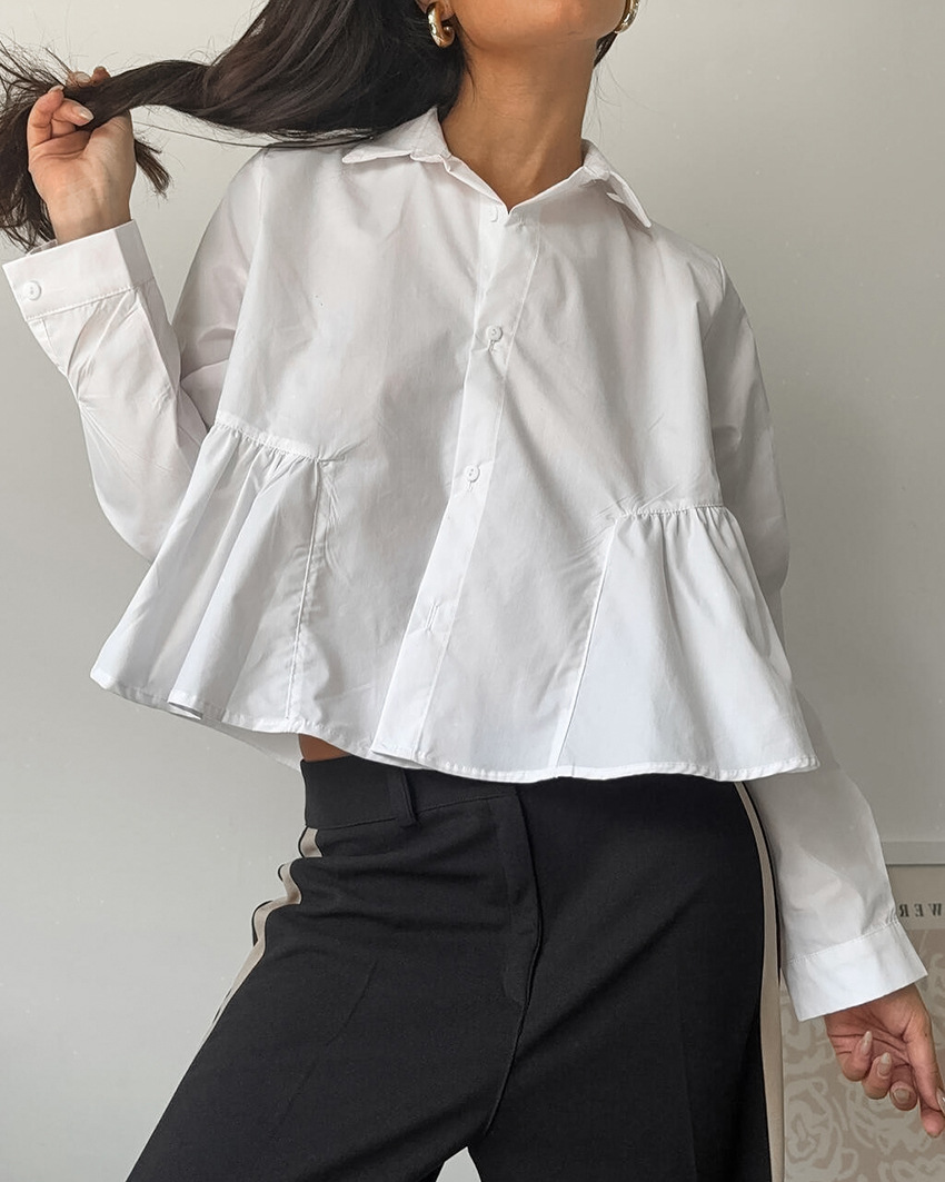 French-style Relaxed-fit White Lapel Shirt For Women