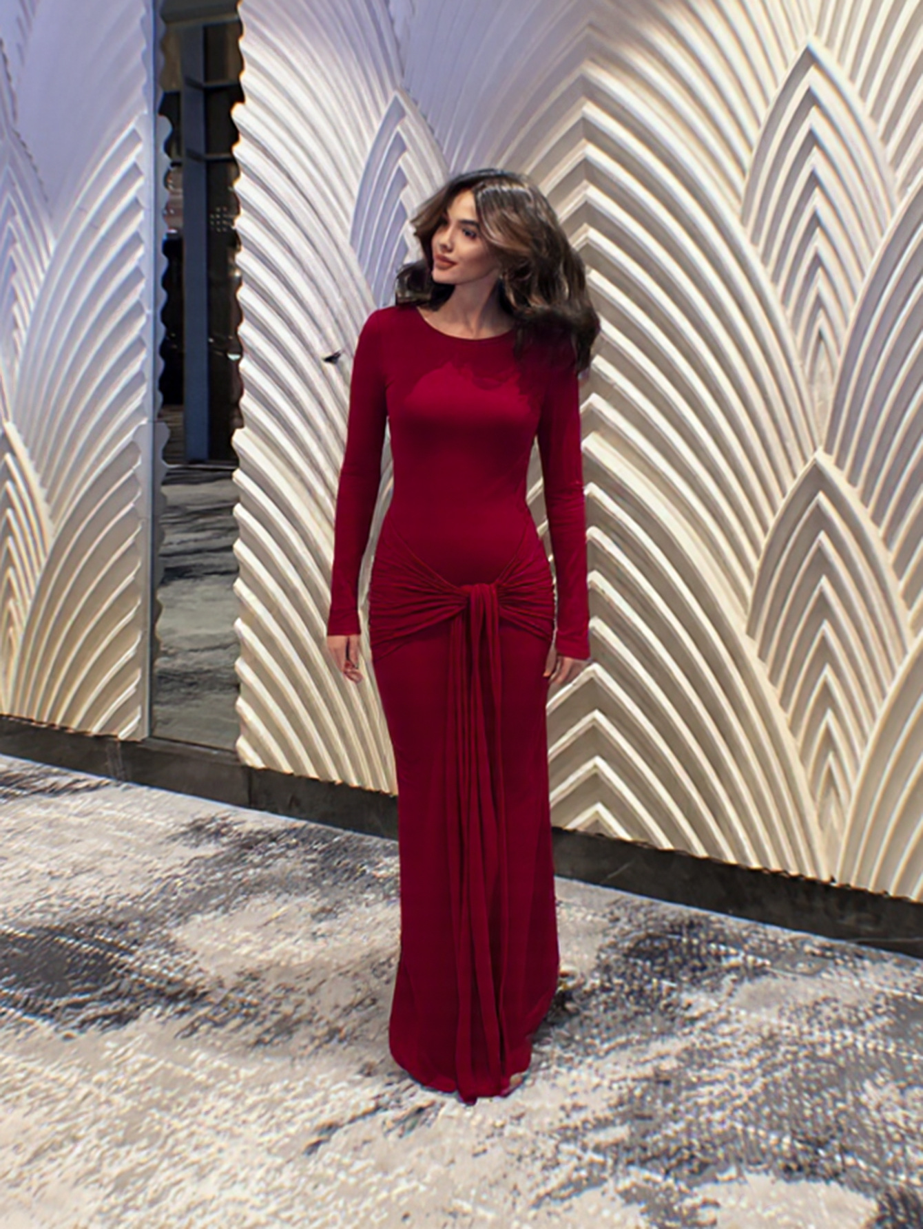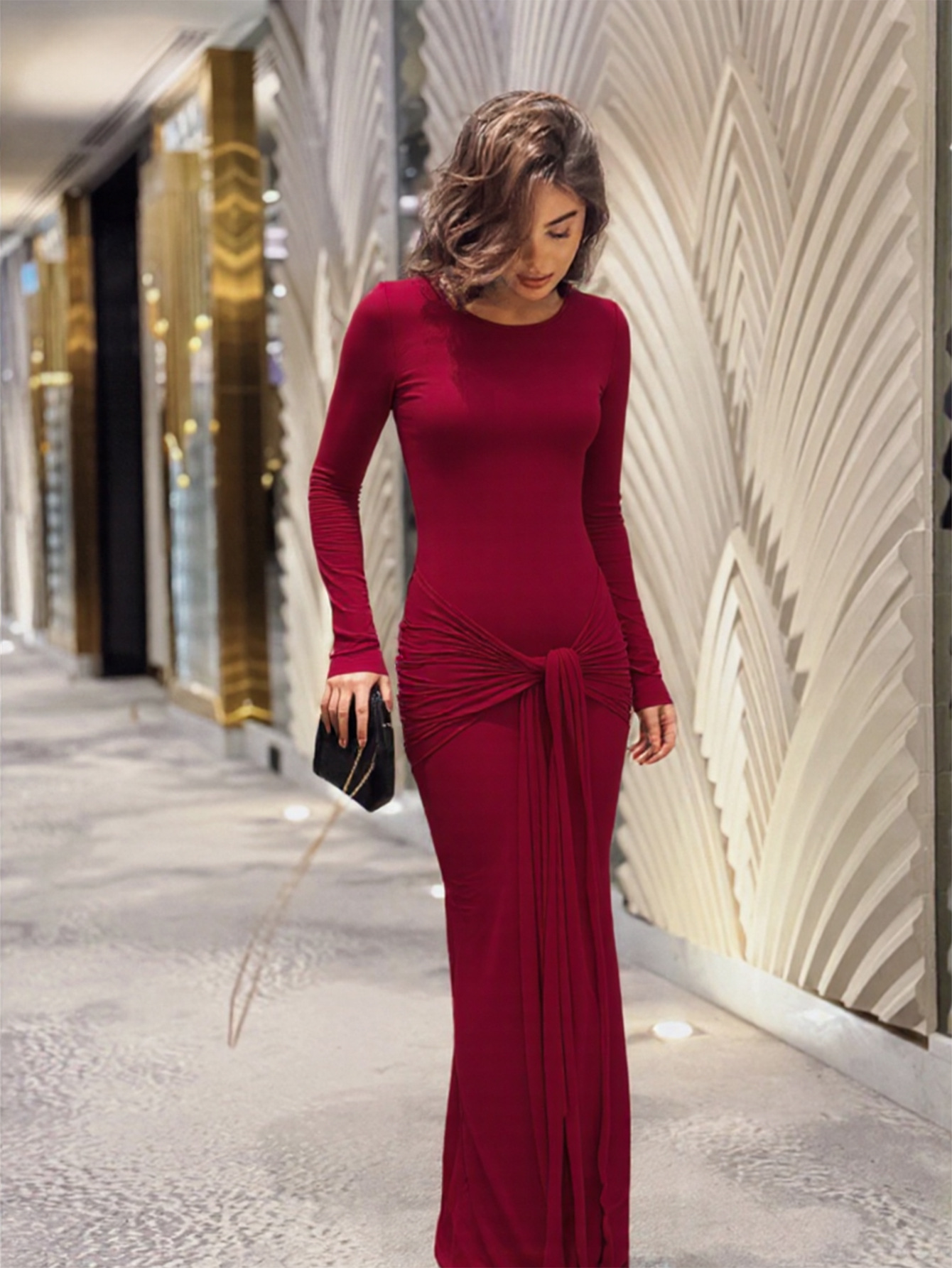 Womens Long-sleeve Body-hugging Crew-neck Fashionable Sheath Dress